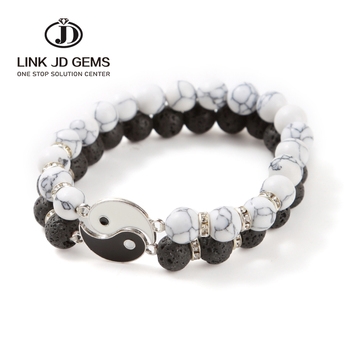 Bracelet de Couple Tai Chi Yin Yang 5A en pierre de lave noir et blanc, Bracelets tressés, Bracelets pour amis, bijoux cadeau